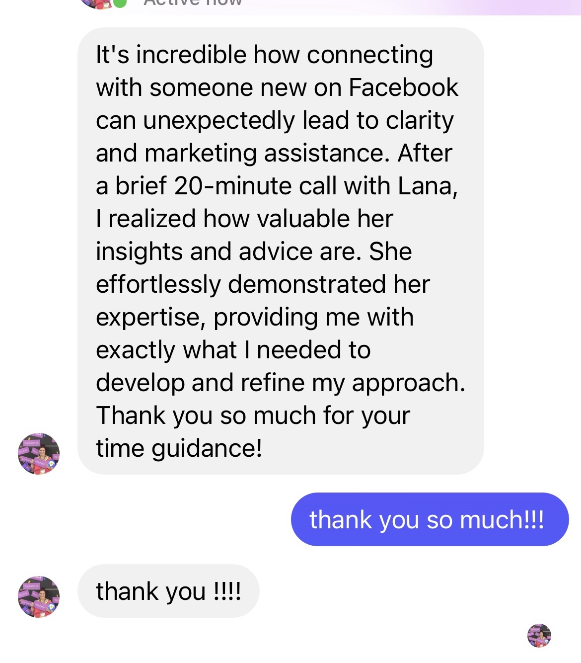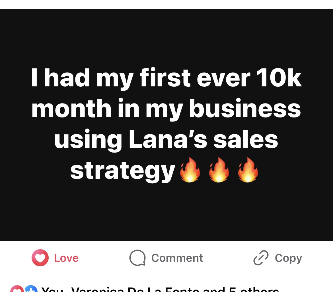 Inside a mastermind group I made a post looking for help with my sales process, Lana being experienced in sales for years reached out to me.